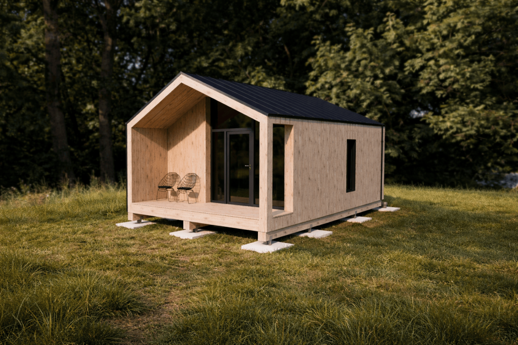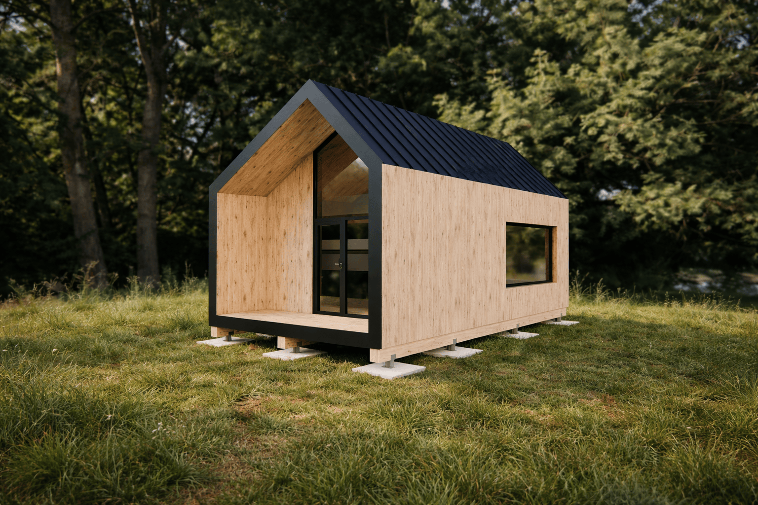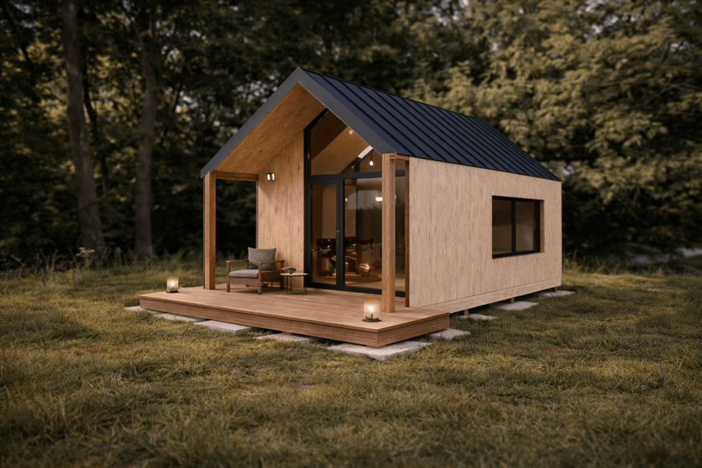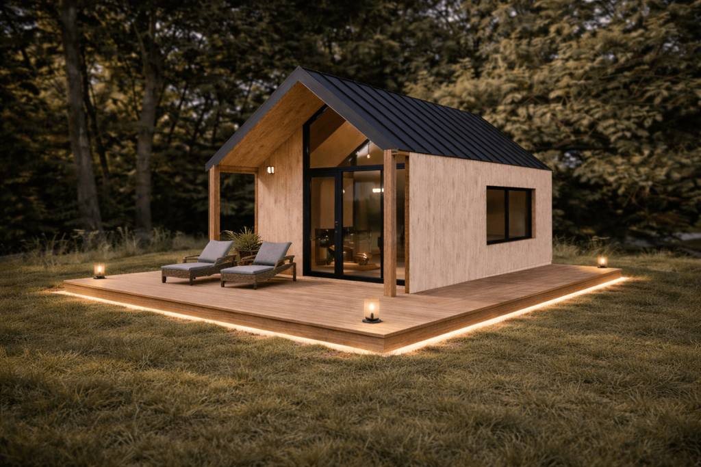 - Zahvaljujući modernom dizajnu i fleksibilnom rasporedu, kućica je idealna za privatni odmor, turistički najam ili kao dodatni objekt na parceli.