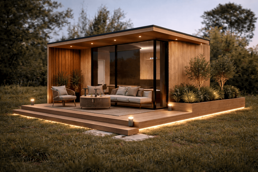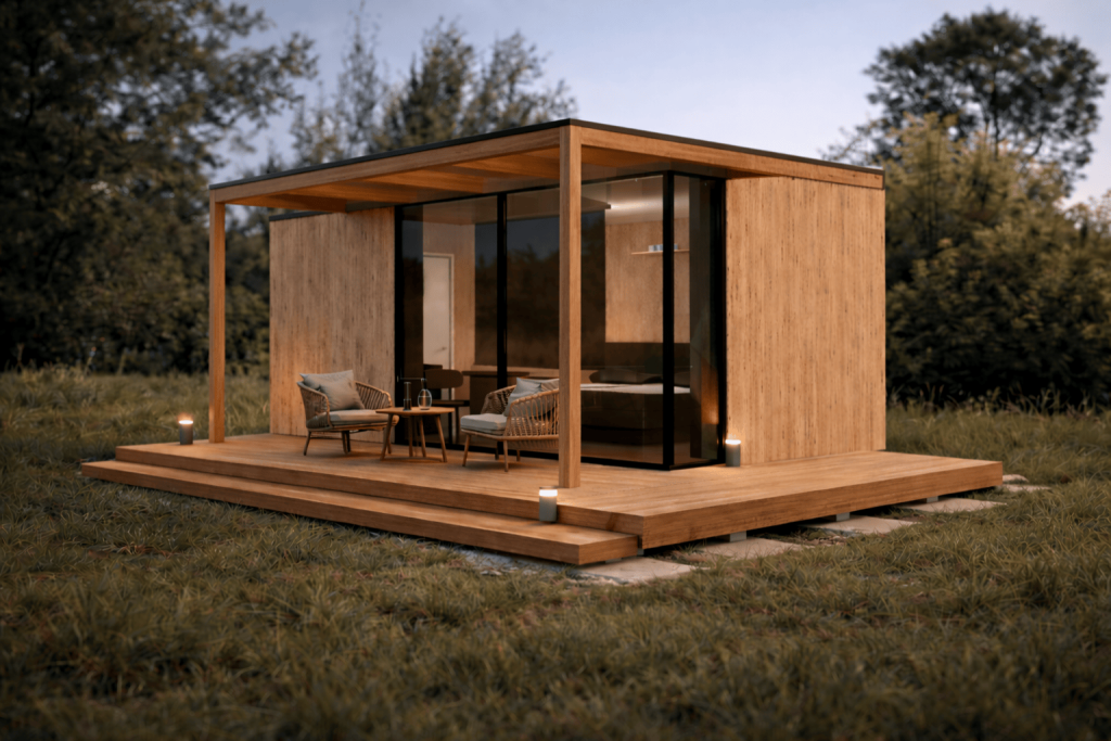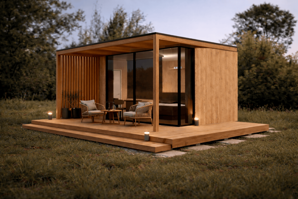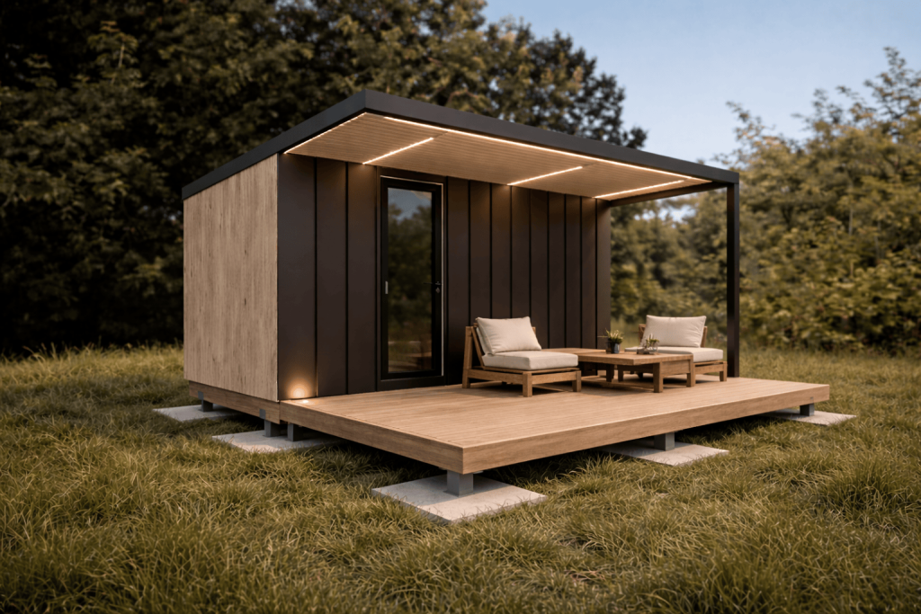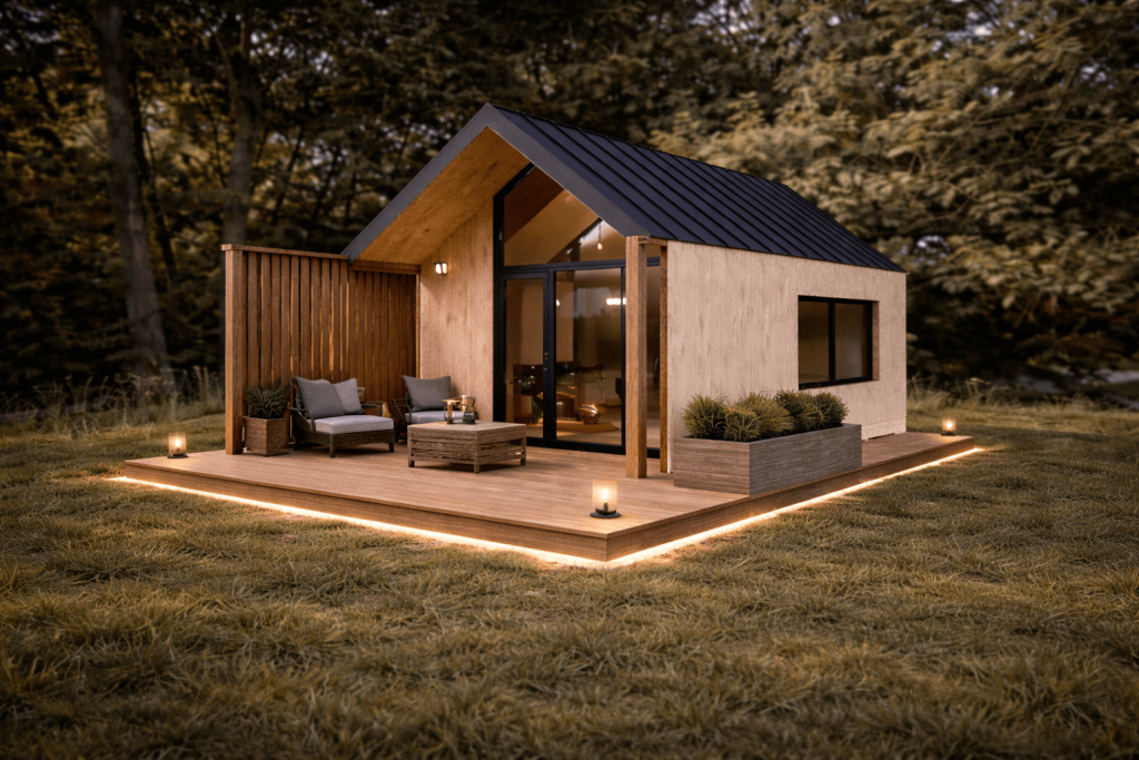 - Zahvaljujući modernom dizajnu i fleksibilnom rasporedu, kućica je idealna za privatni odmor, turistički najam ili kao dodatni objekt na parceli.